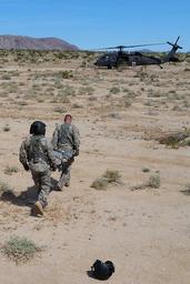 Keywords: weed army community hospital weedarmycommunityhospital wach national training center nationaltrainingcenter ntc fort irwin fortirwin california col. jason wieman coljasonwieman command sgt maj. albert harris commandsgtmajalbertharris 2916th aviation battalion 2916thaviationbattalion emergency medical care emergencymedicalcare meddac rhc-c rhcc patient care patientcare soldier readiness soldierreadiness army training armytraining medical evacuation medicalevacuation medevac capt. sean donohue captseandonohue outdoor FORT IRWIN, Calif. -- The 2916th Aviation Battalion utilized an off-cycle window in their calendar March 20 - 23 to conduct brigade-level training in the National Training Center's "Box". The exercise culminated at the Fort Irwin Weed Army Community Hospital (WACH) March 23. The goal of the training is to test readiness as well as hone emergency medical skills among the participating service members. One simulation presented the participants with an Improvised Explosive Device (IED) attack on a troop transport that resulted in 16 casualties. The role players required triage at the point of injury in the training area, then airlifted back to the WACH on Fort Irwin for treatment. This was a large-scale training module that involved complex planning. To make the exercise as authentic as possible training units had no warning of what they would encounter throughout the course of the event and participants were alerted only as the scenario unfolded, just as if the casualties and events were real. Large casualty events of this kind take a special type of planning coordination, material and geography to execute, and even more consideration to undertake, which makes the NTC an ideal venue for such training. The 2916th assumed the role of air medevac, requiring multiple airlifts to bring all casualties back to the WACH, where staff members prioritized, stabilized and treated the mock casualties, then prepared to fly any they determined needing specialized care beyond WACH capabilities to other nearby available medical facilities for more extensive treatment. To learn more about the people and facilities of the National Training Center and the Weed Army Community Hospital visit their official websites at www.irwin.army.mil or www.irwin.amedd.army.mil Photo by Captain Sean Donoghue for WACH Public Affairs (Released), FORT IRWIN, Calif. -- The 2916th Aviation Battalion utilized an off-cycle window in their calendar March 20 - 23 to conduct brigade-level training in the National Training Center's "Box". The exercise culminated at the Fort Irwin Weed Army Community Hospital (WACH) March 23. The goal of the training is to test readiness as well as hone emergency medical skills among the participating service members. One simulation presented the participants with an Improvised Explosive Device (IED) attack on a troop transport that resulted in 16 casualties. The role players required triage at the point of injury in the training area, then airlifted back to the WACH on Fort Irwin for treatment. This was a large-scale training module that involved complex planning. To make the exercise as authentic as possible training units had no warning of what they would encounter throughout the course of the event and participants were alerted only as the scenario unfolded, just as if the casualties and events were real. Large casualty events of this kind take a special type of planning coordination, material and geography to execute, and even more consideration to undertake, which makes the NTC an ideal venue for such training. The 2916th assumed the role of air medevac, requiring multiple airlifts to bring all casualties back to the WACH, where staff members prioritized, stabilized and treated the mock casualties, then prepared to fly any they determined needing specialized care beyond WACH capabilities to other nearby available medical facilities for more extensive treatment. To learn more about the people and facilities of the National Training Center and the Weed Army Community Hospital visit their official websites at www.irwin.army.mil or www.irwin.amedd.army.mil Photo by Captain Sean Donoghue for WACH Public Affairs (Released),