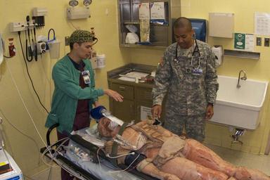 | Keywords: weed army community hospital weedarmycommunityhospital wach national training center nationaltrainingcenter ntc fort irwin fortirwin california col. jason wieman coljasonwieman command sgt maj. albert harris commandsgtmajalbertharris 2916th aviation battalion 2916thaviationbattalion emergency medical care emergencymedicalcare meddac rhc-c rhcc patient care patientcare soldier readiness soldierreadiness army training armytraining medical evacuation medevac medicalevacuationmedevac indoor FORT IRWIN, Calif. -- The 2916th Aviation Battalion utilized an off-cycle window in their calendar March 20 - 23 to conduct brigade-level training in the National Training Center's "Box". The exercise culminated at the Fort Irwin Weed Army Community Hospital (WACH) March 23. The goal of the training is to test readiness as well as hone emergency medical skills among the participating service members. One simulation presented the participants with an Improvised Explosive Device (IED) attack on a troop transport that resulted in 16 casualties. The role players required triage at the point of injury in the training area, then airlifted back to the WACH on Fort Irwin for treatment. This was a large-scale training module that involved complex planning. To make the exercise as authentic as possible training units had no warning of what they would encounter throughout the course of the event and participants were alerted only as the scenario unfolded, just as if the casualties and events were real. Large casualty events of this kind take a special type of planning coordination, material and geography to execute, and even more consideration to undertake, which makes the NTC an ideal venue for such training. The 2916th assumed the role of air medevac, requiring multiple airlifts to bring all casualties back to the WACH, where staff members prioritized, stabilized and treated the mock casualties, then prepared to fly any they determined needing specialized care beyond WACH capabilities to other nearby available medical facilities for more extensive treatment. To learn more about the people and facilities of the National Training Center and the Weed Army Community Hospital visit their official websites at www.irwin.army.mil or www.irwin.amedd.army.mil Photo by Michael Beaton, Public Affairs (Released). FORT IRWIN, Calif. -- The 2916th Aviation Battalion utilized an off-cycle window in their calendar March 20 - 23 to conduct brigade-level training in the National Training Center's "Box". The exercise culminated at the Fort Irwin Weed Army Community Hospital (WACH) March 23. The goal of the training is to test readiness as well as hone emergency medical skills among the participating service members. One simulation presented the participants with an Improvised Explosive Device (IED) attack on a troop transport that resulted in 16 casualties. The role players required triage at the point of injury in the training area, then airlifted back to the WACH on Fort Irwin for treatment. This was a large-scale training module that involved complex planning. To make the exercise as authentic as possible training units had no warning of what they would encounter throughout the course of the event and participants were alerted only as the scenario unfolded, just as if the casualties and events were real. Large casualty events of this kind take a special type of planning coordination, material and geography to execute, and even more consideration to undertake, which makes the NTC an ideal venue for such training. The 2916th assumed the role of air medevac, requiring multiple airlifts to bring all casualties back to the WACH, where staff members prioritized, stabilized and treated the mock casualties, then prepared to fly any they determined needing specialized care beyond WACH capabilities to other nearby available medical facilities for more extensive treatment. To learn more about the people and facilities of the National Training Center and the Weed Army Community Hospital visit their official websites at www.irwin.army.mil or www.irwin.amedd.army.mil Photo by Michael Beaton, Public Affairs (Released). |