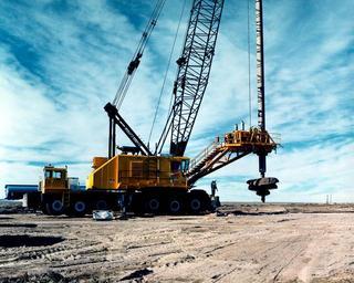| Keywords: NTS - Big Hole Drilling 004.jpg en This equipment at the U S Department of Energy's Nevada Test Site is capable of augering soil down to depth of 150 ft Here it is suspended from a 150 ton crane The rotary auger is driven by two separate motors suspended from the raised platform It is used to start some vertical bore holes from underground nuclear tests 812 NF-4558 Federal Government of the United States PD-USGov Unidentified trucks Crane trucks Drilling machines Nevada Test Site Big Hole Drilling Semi-trailer trucks |