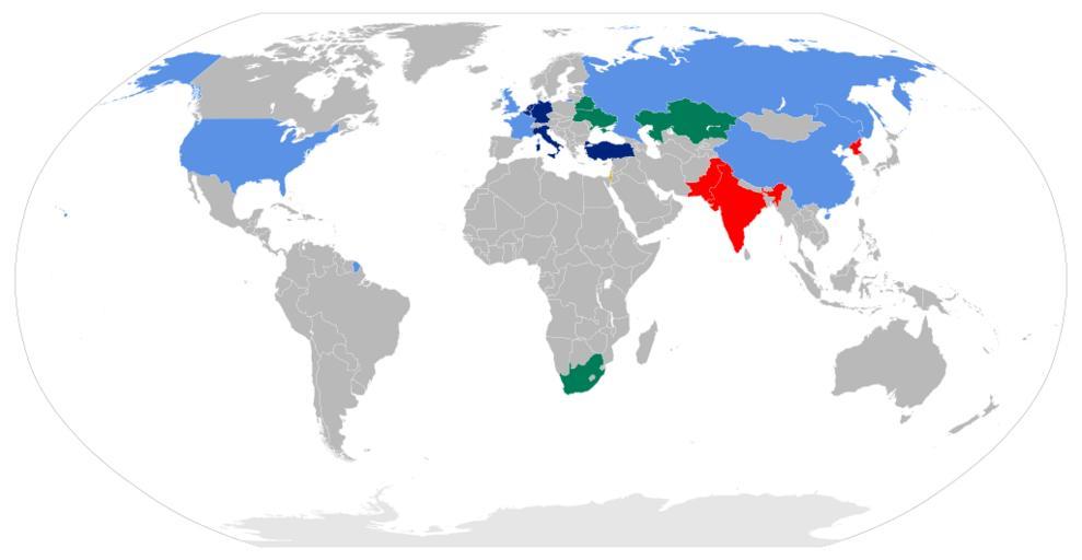| Keywords: Nuclear weapons states.svg 5B92E5 NPT Nuclear Weapon States China France Russia UK USA ff0000 Non-NPT Nuclear Weapon States India North Korea Pakistan d4aa00 Undeclared Nuclear Weapon States Israel 00247D NATO nuclear weapons sharing states Belgium Germany Netherlands Italy Turkey 007C59 States formerly possessing nuclear weapons Belarus Kazakstan Ukraine South Africa Canada 5B92E5 Naciones con Armas Nucleares TNP China Francia Rusia Reino Unido EE UU ff0000 Naciones con Armas Nucleares no-TNP India Corea del Norte Pakistán d4aa00 Naciones con Armas Nucleares no-declaradas Israel 00247D Naciones con Armas Nucleares compartidas de la OTAN Bélgica Alemania Holanda Italia Turquía 007C59 Naciones que tuvieron armas nuclares Bielorrusia Kazajistán Ucrania Sudáfrica 5B92E5 Stati con armi nucleari aderenti al NPT China Francia Russia Regno Unito Stati Uniti ff0000 Stati con armi nucleari non aderenti al NPT India Corea del Nord Pakistan d4aa00 Stati con armi nucleari non dichiarate Israele 00247D Stati NATO che condividono testate nucleari Belgio Germania Paesi Bassi Italia Turchia 007C59 Stati che in passato hanno posseduto armi nucleari 5B92E5 Atommächte im Atomwaffensperrvertrag China Frankreich Russland UK USA ff0000 Atommächte außerhalb des Atomwaffensperrvertrags Indien Nordkorea Pakistan d4aa00 Ungeklärter Status eines Atomwaffenprogramms Israel 00247D Mitgliedsstaaten der Nuklearen Teilhabe 007C59 Ehemalige Atommächte 5B92E5 Atomfegyverrel rendelkező országok Kína Franciaország Oroszország Egyesült Királyság USA ff0000 Atomfegyverrel nem rendelkező országok India Észak-Korea Pakisztán d4aa00 Saját atomfegyverről nem nyilatkozó országok Izrael 00247D Országok NATO atomfegyverekkel Belgium Németország Hollandia Olaszország Törökország 007C59 Korábban atomfegyverekkel rendelkező országok Fehéroroszország Kazahsztán Ukrajna és Dél-Afrika 5B92E5 Яде ные де жавы подписавшие догово о не асп ост анении яде ного о ужия Д ЯО Великоб итания Китай Россия США Ф анция ff0000 Яде ные де жавы неподписавшие Д ЯО Индия Пакистан Севе ная Ко ея d4aa00 еофицальные яде ные де жавы Из аиль 00247D Ст аны п едоставляющие свою те ито ию для азмещения яде ного о ужия д угих яде ных де жав - членов АТО Ге мания Из аиль Италия Ту ция Бельгия иде ланды 007C59 Ст аны имеющие яде ное о ужие в п ошлом но доб овольно отказавшиеся от него ЮАР Казахстан Бело уссия Ук аина b9b9b9 Ст аны никогда не обладающие яде ным о ужием и неп едоставляющие свои те ито ии для азмещения яде ного о ужия д угих ст ан 5B92E5 不擴散核武器 約 中提及的5 擁 核武器之 家(美 法 中 英 與俄羅斯) ff0000 不擴散核武器 約 之外其他擁 核武器之 家(巴基斯 鮮 印度) d4aa00 被認為擁 核武器之 家(以色列) 00247D 參與北大西洋公約組織共 核武器政策之 家(比利時 德 荷蘭 其 義大利) 007C59 曾經擁 核武器的 家(白俄羅斯 南 哈薩克 烏克蘭) auto-prodotto sulla base di BlankMap-World6 svg 2008-05-17 Bourgeois Image Nuclear_weapons png File Atommächte1006 png Nuclear proliferation Distributional maps of the world |