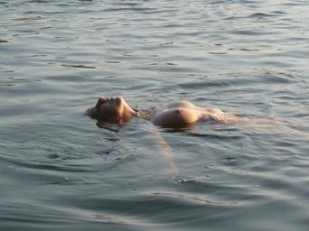 Keywords: nude topless female erotic adult caucasian bare swimming river breast attractive young