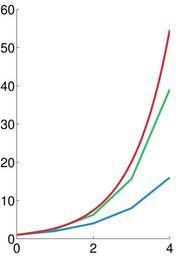 | Keywords: Numerical integration illustration, h=1.png vector version available Numerical integration illustration step 1 svg Illustration of Numerical ordinary differential equations own Oleg Alexandrov Created with MATLAB Source code MATLAB <source lang matlab > illustration of numerical integration compare the Forward Euler method which is globally O h with Midpoint method which is globally O h 2 and the exact solution function main f inline 'y' 't' 'y' ; will solve y' f t y a 0; b 4; endpoints of the interval where we will solve the ODE N 5; T linspace a b N ; h T 2 -T 1 ; the grid y0 1; initial condition solve the ODE Y_euler solve_ODE N f y0 h T 1 ; Forward Euler method Y_midpt solve_ODE N f y0 h T 2 ; midpoint method T_highres a 0 1 b; Y_exact exp T_highres ; prepare the plotting window lw 3; curves linewidth fs 20; font size figure 1 ; clf; set gca 'fontsize' fs ; hold on; colors red 0 867 0 06 0 14; blue 0 129 205/256; green 0 200 70/256; plot the solutions plot T Y_euler 'color' blue 'linewidth' lw plot T Y_midpt 'color' green 'linewidth' lw plot T_highres Y_exact 'color' red 'linewidth' lw axes aspect ratio pbaspect 1 1 5 1 ; save to disk disp sprintf 'Grid size is 0 9g' h saveas gcf sprintf 'Numerical_integration_illustration _h 0 2g eps' h 'psc2' ; function Y solve_ODE N f y0 h T method Y 0 T; Y 1 y0; for i 1 N-1 t T i ; y Y i ; if method 1 forward Euler method Y i+1 y + h f t y ; elseif method 2 explicit one step midpoint method K y + 0 5 h f t y ; Y i+1 y + h f t+h/2 K ; else disp 'Don`t know this type of method' ; return; end end </source> Images with Matlab source code Numerical analysis Files by User Oleg Alexandrov from en wikipedia |