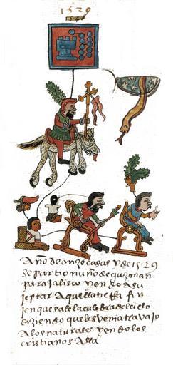 | Keywords: NunoBeltranGuzman-1.jpg From Codex Telleriano Remensis Filio 44R año de onze casas y de 1529 se partio nuño de guzman para jalisco yendo a sujeptar aquella tierra finjen que sale la culebra del cielo diziendo que les venia travajo a los naturales yendo los cristianos alla Year of 11 House Mahtlactli Calli and of 1529 Nuño de Guzman left for Jalisco to subjugate that land; they feign that a snake came out of the sky saying that hard times were coming for the natives with the Christians going over there PD-Art Codex Telleriano-Remensis Artworks missing infobox template |