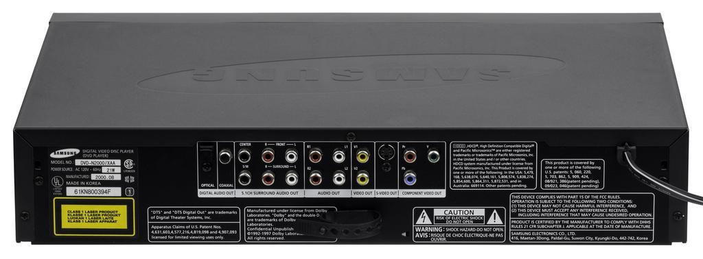 | Keywords: Nuon-N2000-Console-Back.jpg The back of the Samsung N2000 DVD player a hybrid gaming system/DVD player that was released in 2000 The N2000 features the Nuon chipset which made it capable of playing 3D games and offering enhanced DVD playback with select movies The Nuon line of gaming systems/DVD players came in a few models from different manufacturers but the N2000 was the first to the market and also came bundled with a controller Very few games were released for the platform until the Nuon chipset was phased out a few years later <p>Being a DVD player the N2000 offers a relatively easy means of hooking up and using the system A selection of composite S-Video and component connections are available and require no unique connectors own 2014-09-02 Evan-Amos User Evan-Amos/EABanner Taken with Nikon D7100 Electronic devices on white background NUON DVD players Samsung Electronics products |