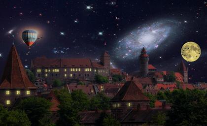 Keywords: nuremberg castle space moon balloon good night fly night universe star middle ages galaxy fantasy fairy tales image overlay
