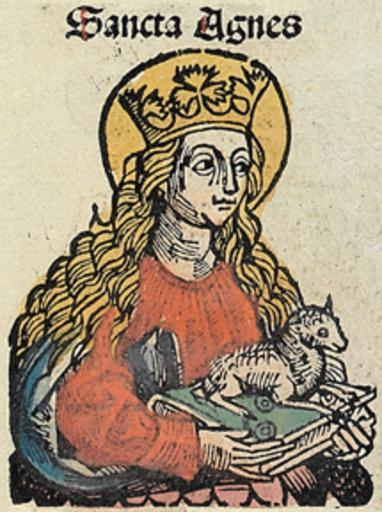 Keywords: Nuremberg chronicles f 124r 2.png Schedel'schen Weltchronik Blatt 124r en Illustration from the Nuremberg Chronicle own scan from original book 1493 Michel Wolgemut Wilhelm Pleydenwurff Text Hartmann Schedel PD-old-100 Nuremberg Chronicle illustrations f 121-130 124r 2 Saint Agnes of Rome Saints in the Nuremberg Chronicle People with sheep in art Women with books in art Females with crowns in art |