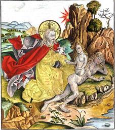 | Keywords: Nuremberg chronicles - f 6v.png This is a part of a scan of an historical document Title Schedelsche Weltchronik or Nuremberg Chronicle own scan from original book language Latin 1493 Hartmann Schedel Out of copyright as author died more than 70 years ago PD-old Adam and Eve Creation of Eve Nuremberg Chronicle illustrations f 001-010 006v Old Testament in the Nuremberg Chronicle Woodcuts by Albrecht Dürer 1489-1500 | ||||
