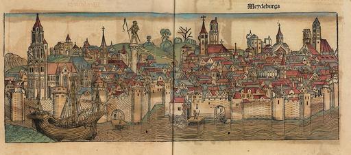 | Keywords: Nuremberg chronicles - MEYDEBURGA.png Schedel'schen Weltchronik Blatt 179v/180r here own scan from original book 1493 Michel Wolgemut Wilhelm Pleydenwurff Text Hartmann Schedel PD-old-100 <gallery heights 200px widths 250px perrow 3 > Image Schedelsche Weltchronik - Paris jpg Image said to be Paris Image Nuremberg chronicles f 51v 1 png Image said to be Tarvisio </gallery> Nuremberg Chronicle Towns Nuremberg Chronicle illustrations f 171-180 180 1493 in Magdeburg | ||||