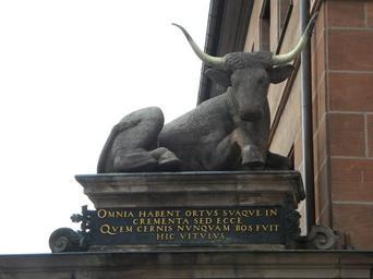 Keywords: nuremberg meat market ox monument sculpture statue latin inscription old town