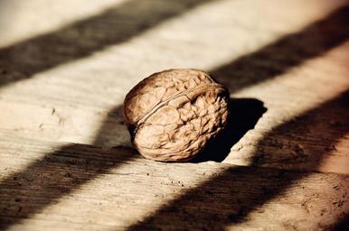 Keywords: nut walnut healthy fruit bowl wood floor light and shadow sunlight retro look