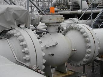 | Keywords: NWO-Kugelhahn.JPG en Ball valve in a pipeline pump station closed as recognizable by the orange indicator plate de Kugelhahn in einer Pipeline-Pumpstation in geschlossener Stellung erkennbar an der Stellung des orangenen Anzeigers own Wilfra 2009-03-06 Photo taken at and with kind permission by de Nord-West-Oelleitung Pipeline transport Ball valves |
