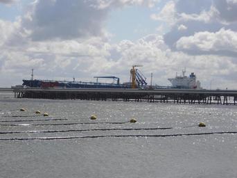| Keywords: NWO-Pier 1.JPG de Die Tankerlöschbrücke der NWO-Ölleitungsgesellschaft in Wilhelmshaven Daran der Tanker Alyarmouk 116 000 tdw beim Löschen von 80 000 t Erdöl Zeitungsmeldung Im Vordergrund bereitliegende Ölbarrieren Tanker pier of the NWO pipeline company at Wilhelmshaven The tanker Alyarmouk 116 000 tdw is berthed to unload 80 000 t crude oil newspaper report In the foreground ready to use oil barriers Own KuK 2009-06-12 PD Heppenser Groden NWO Pier Wilhelmshaven Oil tankers Ships in Wilhelmshaven |