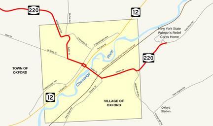 | Keywords: NY 220 original routing in Oxford.svg New York State Route 220 in Oxford New York Features traced in Inkscape from a http //www nysgis state ny us/gisdata/quads/drg24/usgspreview/index cfm code o42075d5 1949 USGS topographic map of Oxford The routing of NY 220 east of the Chenango River was not marked on the topographic map but is clearly marked on a 1940 Rand McNally map of New York and implicitly marked on prior maps as well Own TwinsMetsFan 2009-05-23 New York State Route 220 Road maps of New York |