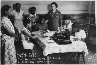 | Keywords: NYA-"Lee County Training School(Negro)"-Tupelo, Mississippi-students at work in library - NARA - 195369.tif Scope and content General notes 195369 Local identifier Roosevelt Franklin D Franklin Delano 1882-1945 Franklin D Roosevelt Library NLFDR 4079 Albany Post Road Hyde Park NY 12538-1999 1936-05-08 Record group Collection FDR-PHOCO Franklin D Roosevelt Library Public Domain Photographs 1882 - 1962 Record group ARC 1184 Franklin D Roosevelt Library Public Domain Photographs compiled 1882 - 1962 Series ARC 195301 File unit File unit ARC Variant control numbers NAIL Control Number NLR-PHOCO-A-5241 40 yes Other versions NARA-cooperation PD-USGov 1936 photographs People of the United States in 1936 1936 in Mississippi Black and white photographs of the United States in the 1930s May 1936 in the United States Women at work in the United States |