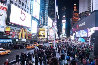 Keywords: nyc timessquare city lights people billboards america crowd busy pedestrians buildings