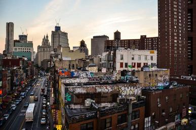 Keywords: nyc usa america new york new york city panorama outlook skyscraper water tanks skyline skyscrapers evening dusk twilight city road animated