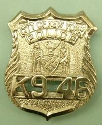 | Keywords: NYPD.K9-dogsbadge.JPG A badge of a police dog within the New York Police Department K 9 unit dog 46 own 2005-10-29 User Mattes Insignia of the New York City Police Department Police dogs in the United States Taken with Panasonic Lumix DMC-LC50 Law enforcement badges of New York |