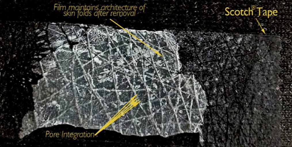 Keywords: NYU Langone Core Microscopy Scarguard Nanofilm.png en Scarguard Nanofilm lifted off skin with Scotch® Tape Macrophotography shows biomechanical integration of the dry film into pores sweat glands and microscopic crevices of the skin 2014-05-15 14 10 09 NYU Core Microscopy Laboratory NYU Medical Center Alice Liang PhD cc-zero Uploaded with UploadWizard Check categories 2015 April 26 Scarguard |
