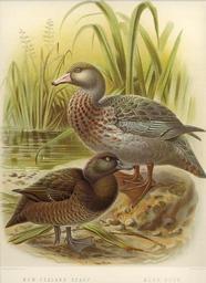| Keywords: NZ Ducks2.jpg New-Zealand Scaup Fuligula novæ zealandiæ Blue Duck Hymenolæmus malacorhynchus en New Zealand Scaup/Black teal Aythya novaeseelandiae and Blue Duck Hymenolaimus malacorhynchos Buller's A History of the Birds of New Zealand 2nd edition Published 1888 Published 1888 By J G Keulemans PD-old-auto-1923 1912 checked WikiProject Birds A History of the Birds of New Zealand by Buller Plate XLV Aythya novaeseelandiae Hymenolaimus malacorhynchos | ||||
