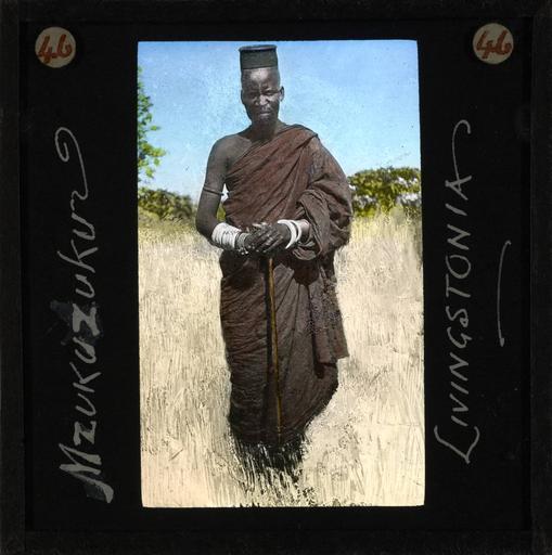 | Keywords: "Nzukuzuku, Livingstonia" Malawi, ca.1895 (imp-cswc-GB-237-CSWC47-LS3-1-046).jpg en <br> Nzukuzuku Livingstonia Malawi ca 1895 Full length photograph of a man likely of the Ngoni people The man is dressed in red robes wears arm rings and carry's a stick ; The Ngoni people are an ethnic group living in Malawi Mozambique Tanzania and Zambia Their origins can be traced to the Zulu people of kwaZulu-Natal in South Africa Photographer Unknown Filename imp-cswc-GB-237-CSWC47-LS3-1-046 tif Coverage date circa 1895 Part of collection International Mission Photography Archive ca 1860-ca 1960 Type images Part of subcollection Photographs from the Centre for the Study of World Christianity University of Edinburgh U K ca 1900-ca 1940s Repository name Centre for the Study of World Christianity Archival file impaunpub_Volume7/1432 url Repository address The University of Edinburgh School of Divinity New College Mound Place Edinburgh EH1 2LX United Kingdom Geographic subject country Malawi Format aacr2 1 lantern slide 8 x 8 cm Geographic subject continent Africa Rights Contact the repository for details Part of series Elmslie of the Wild Ngoni LS3/1 Repository email divinity-CSWC ed ac uk Subject lcsh Keyword Ethnic costume Date created circa 1895 Publisher of the digital version University of Southern California Libraries Subject aat genre portraits Format aat lantern slides Legacy record ID impa-m68442 Access conditions http //www ed ac uk/schools-departments/divinity/research/centres/world-christianity/collections-resources File GB 237 CSWC47/LS3/1/46 1895 author http //digitallibrary usc edu/cdm/ref/collection/p15799coll123/id/64553 PD-old-70-1923 Magic lantern images Images from USC Digital Library uploaded by Fæ International Mission Photography Archive ca 1860-ca 1960 |