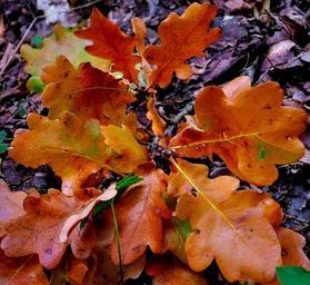 Keywords: oak leaves autumn leaves fall nature season color orange colored october forest plant
