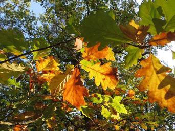 Keywords: oak leaves oak autumn leaves emerge tree forest fall color bright colorful nature
