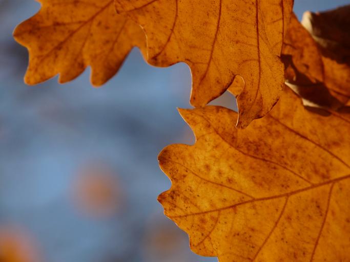 Keywords: oak leaves oak quercus sessile oak quercus petraea winter oak golden autumn golden october autumn october forest leaves golden bright sun back light colorful color tree road autumn forest