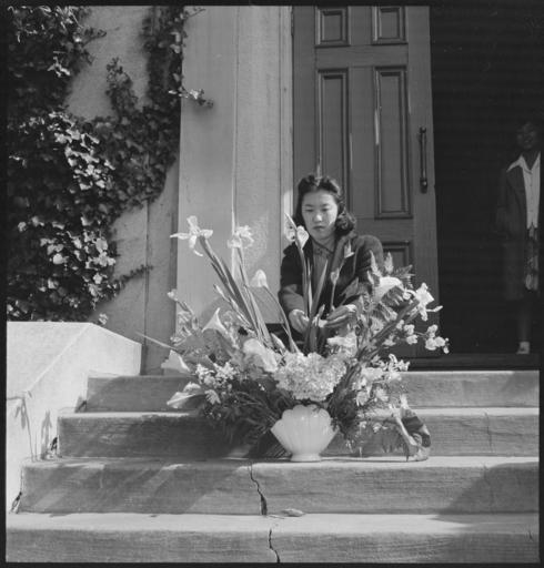 | Keywords: Oakland, California. Arranging flowers for alter on last day of services at Japanese Independent Co . . . - NARA - 536432.jpg Scope and content The full caption for this photograph reads Oakland California Arranging flowers for alter on last day of services at Japanese Independent Congregational Church prior to evacuation Evacuees of Japanese ancestry will be housed at War Relocation Authority centers for the duration General notes 536432 Local identifier 210-G-A541 Department of the Interior War Relocation Authority 02/16/1944 - 06/30/1946 NARA-Author Lange Dorothea 1895-1965 Photographer 1372774 <br /> Still Picture Records Section Special Media Archives Services Division NWCS-S National Archives at College Park 8601 Adelphi Road College Park MD 20740-6001 1942-04-26 Record group Record Group 210 Records of the War Relocation Authority 1941 - 1989 Record group ARC 537 Central Photographic File of the War Relocation Authority compiled 1942 - 1945 Series ARC 536000 File unit File unit ARC Variant control numbers NAIL Control Number NWDNS-210-G-A541 Other versions <gallery> File Oakland _California _Arranging_flowers_for_alter_on_last_day_of_services_at_Japanese_Independent_Co_ _ _ _-_NARA_-_536432 tif tif File Oakland _California _Arranging_flowers_for_alter_on_last_day_of_services_at_Japanese_Independent_Co_ _ _ _-_NARA_-_536432 jpg jpg </gallery> NARA-cooperation PD-USGov Dorothea Lange Japanese American internment processing in Oakland Ikebana in the United States |