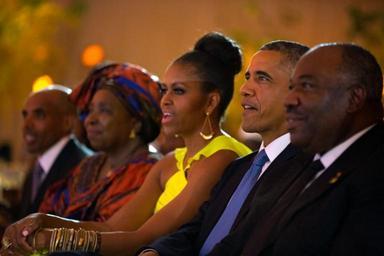 | Keywords: Obamas with Bongo and Dlamini-Zuma at summit.jpg en President Barack Obama First Lady Michelle Obama Her Excellency Dr Nkosazana Clarice Dlamini Zuma Chairperson of the African Union and Ali Bongo Ondimba President of the Gabonese Republic listen to Lionel Richie perform at the U S -Africa Leaders Summit dinner on the South Lawn of the White House Aug 5 2014 2014-08-05 http //www whitehouse gov/photos-and-video/photogallery/us-africa-leaders-summit White House photo by Pete Souza other versions PD-USGov Uploaded with UploadWizard Michelle and Barack Obama U S -Africa Leaders Summit White House Dinner Ali Bongo Ondimba Nkosazana Dlamini-Zuma |