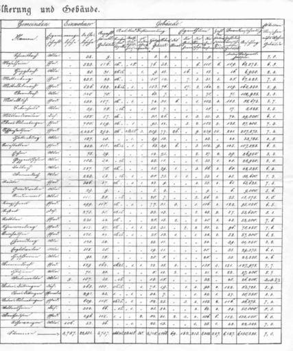 Keywords: Oberamt Biberach Tabelle 1b.jpg de Dies ist ein Scan des Buches en This is a scan of the book Beschreibung des Oberamts Biberach Cotta Stuttgart und Tübingen 1837 Biberach Landkreis in Baden-Württemberg Source de Scan einer Faksimileausgabe Bissinger Magstadt 1974 ISBN 3-7644-0013-7 en Scan from facsimile edition Bissinger Magstadt 1974 ISBN 3-7644-0013-7 Date 1837 Author Prof Johann Daniel Georg von Memminger 1773-1840 Oberamt Biberach PD-old |