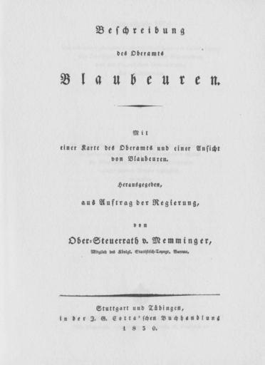 Keywords: Oberamt Blaubeuren 002.jpg de Dies ist ein Scan des Buches en This is a scan of the book Beschreibung des Oberamts Blaubeuren Cotta Stuttgart und Tübingen 1830 Blaubeuren Stadt im Alb-Donau-Kreis /Baden-Württemberg Source de Scan einer Faksimileausgabe Bissinger Magstadt 1976 ISBN 3-7644-0007-2 en Scan from facsimile edition Bissinger Magstadt 1976 ISBN 3-7644-0007-2 Date 1830 Author Prof Johann Daniel Georg von Memminger 1773-1840 Oberamt Blaubeuren PD-old |