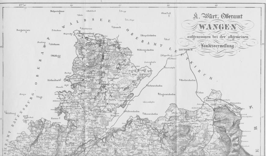 Keywords: Oberamt Wangen Karte Teil 1.jpg en This is a scan of the book Beschreibung des Oberamts Wangen Cotta Stuttgart und Tübingen 1841 Wangen im Allgäu today part of Landkreis Ravensburg Baden-Württemberg de Dies ist ein Scan des Buches Beschreibung des Oberamts Wangen Cotta Stuttgart und Tübingen 1841 Wangen im Allgäu heute Teil des Landkreises Ravensburg Baden-Württemberg de Scan einer Faksimileausgabe Bissinger Magstadt 1982 ISBN 3-7644-0015-3 en Scan from facsimile edition Bissinger Magstadt 1982 ISBN 3-7644-0015-3 August Friedrich Pauly 1796 “1845 1841 PD-old Beschreibung des Oberamts Wangen Maps of Landkreis Ravensburg |