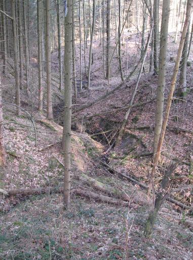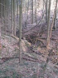 | Keywords: Oberste Gabel des Hirtenbachs.jpg Blick talab nach Osten auf die oberste Schluchtgabel des Hirtenbachs keine 50 m östlich der K 2627 von Schwäbisch Hall-Sulzdorf nach Obersontheim-Herlebach Der linke Zweig war zum Aufnahmezeitpunkt trocken der rechte setzte erst zwischen seiner Straßenunterführung und der Gabel ein View to the East and downstream onto the topmost fork of the Hirtenbach gap less than 50 m to the East of the L 2627 Schwäbisch Hall-Sulzdorf “Obersontheim-Herlebach When the image was taken the left branch had no water whereas the flow in the right began between the pipe through which he passes at other times under the road mentioned and the fork shown Vue à l'aval sur la branche supérieure de la petite gorge du ruisseau Hirtenbach moins de 50 m à l'est de la route K 2627 Schwäbisch Hall-Sulzdorf “Obersontheim-Herlebach à la prise du photo la branche gauche était à sec tandis que le long de la droite le cours d'eau cessait en amont entre la branche et la route nommée sous laquelle passe un tuyau amenant des eaux en des temps plus pluvieux 2011-03-09 own Brtlwr2 <span class signature-talk >talk</span> 49 5 2 78 N 9 49 49 22 E region DE_heading E Cc-zero Limpurger Berge Schwäbisch Hall |