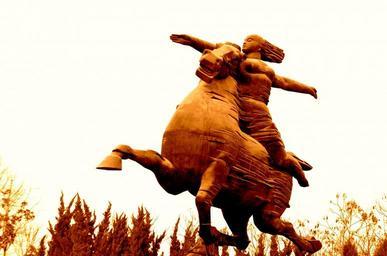 Keywords: objects animals horse rider people art statue riding horseback park