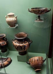 Keywords: Objects from an inhumation, 550-525 BC-2.jpg object history credit line accession number Marmaro T10 Photo by Szilas in the Archaeological Museum of Rhodes Commonist Ancient Greek pottery in the Archaeological Museum of Rhodes