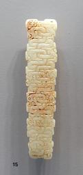 | Keywords: Oblong pendant, China, Spring and Autumn period, perhaps 6th-5th century BC, nephrite - Arthur M. Sackler Museum, Harvard University - DSC00764.jpg en Exhibit in the Arthur M Sackler Museum Harvard University Cambridge Massachusetts USA This artwork is in the public domain because the artist died more than 70 years ago 2015-04-11 10 44 29 own Daderot other versions PD-old-70 cc-zero Chinese jade in the Arthur M Sackler Museum | ||||