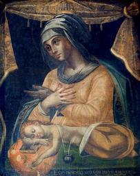| Keywords: Obraz Matki Boskiej Wyszyńskiej.jpg Our Lady of Wyszyna Matka Boska Wyszyńska turn of the century 17 oil canvas Church of the Blessed Virgin Mary Wyszyna accession number object history credit line own Copyright expired PD-Art PD-old-100 Anonymous Baroque painters from Poland Paintings of Madonna and Child in Poland Church of the Nativity of the Virgin Mary in Wyszyna |