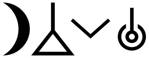 | Keywords: Obscure-female-symbols.svg These are some lesser-known or less historically important symbols meaning female and/or woman The well-known and historically important symbols with this meaning are included in another graphic File Female symbols svg 1 A crescent moon which can symbolize a woman when a contrasting sun symbol usually drawn with flaming rays symbolizes a man This was used in some allegorical contexts and supposedly also on the doors of early 19th-century women's outhouses in the United States 2 The main symbol for a woman in Chapter I of Rudolf Koch's Book of Signs The corresponding symbol for a man is a vertical line with two upwards diagonal lines branching off near the top 3 A downward-pointing angle the chalice which is used in some occultistic/neopagan contexts the corresponding male symbol being the upward-pointing angle or blade This can also appear as a downward-pointing triangle though a basic unelaborated triangle is actually rather ambiguous in meaning Rudolf Koch prefers the upward-pointing triangle as a female sign instead and in some versions of modern bathroom symbols a circle on top of an upward-pointing triangle -- similar to the ancient symbol of the goddess Tanit -- indicates a women's restroom while a circle on top of a downward-pointing triangle indicates a men's restroom For a slightly elaborated version of a downward-pointing triangle which is an unambiguous female symbol see File Female symbols svg 4 The female symbol of the Labanotation dance writing system The corresponding male symbol would change the inside hollow circle to a filled circle Note that a simple circle often indicates woman or female in genealogical charts sociograms kinship terminology diagrams etc However a circle would not be commonly understood as meaning woman / female as a stand-alone symbol outside the context of such a diagram and so is not included in this image or in File Female symbols svg Crescent shape taken from PD image File Triple_Goddess_Symbol_Filled svg Triple_Goddess_Symbol_Filled svg The Labanotation female symbol was converted from the following PostScript vector source code <pre> 12 setlinewidth 72 72 42 0 360 arc closepath stroke gsave 40 setlinewidth 1 setgray 72 128 moveto 72 93 24 lineto stroke grestore 72 172 moveto 72 92 lineto stroke 72 72 16 0 360 arc closepath stroke showpage EOF</pre> The other symbols were made by myself from scratch based on publicly-available information and declared by me to be PD 2016 AnonMoos thumb center More well-known or important female/woman symbols Female symbols Images with PostScript source code |