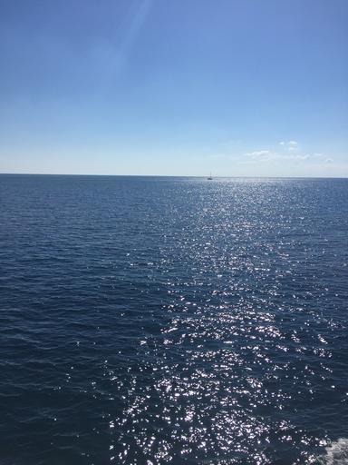 Keywords: ocean sea blue skies sunny sparkling water blue boat