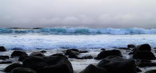 Keywords: ocean waves sea water blue foam sky outdoors rocks