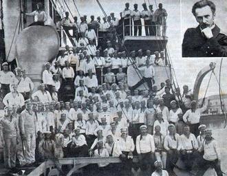 | Keywords: Ochakov crew & Shmidt.jpg ru Команда к ейсе а Очаков за две недели до восстания 1905 г и лейтенант Шмидт в ве хнем п авом углу 1905 Жу нал « ива» 49 1905 Д Пудичев other versions Custom license marker 2016 03 15 PD-RusEmpire Pyotr Schmidt Ochakov ship 1902 Images from Niva magazine 1905 |