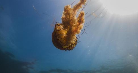 | Keywords: ocnms olympic coast sea nettle invertebrate tentacles light blue david ruck/noaa rucknoaa outdoor water underwater The Pacific sea nettle, like this one in Olympic Coast National Marine Sanctuary, hunts tiny animals like zooplankton and larval fishes with its stinging tentacles and mouth-arms. Plastic bags can look deceptively like sea nettles and other jellies while floating in the water, and can spell trouble for a sea turtle or other animal that's just scouting for a jellyfish snack. Help protect our ocean ecosystems by keeping plastic out of the water! Photo Credit: David J. Ruck/NOAA The Pacific sea nettle, like this one in Olympic Coast National Marine Sanctuary, hunts tiny animals like zooplankton and larval fishes with its stinging tentacles and mouth-arms. Plastic bags can look deceptively like sea nettles and other jellies while floating in the water, and can spell trouble for a sea turtle or other animal that's just scouting for a jellyfish snack. Help protect our ocean ecosystems by keeping plastic out of the water! Photo Credit: David J. Ruck/NOAA |