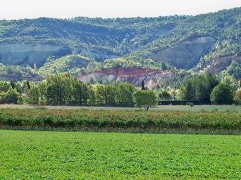 Keywords: Ocres de Rustrel.JPG fr Ocres et vignes à Rustrel Vaucluse France own Véronique PAGNIER 2010-10-17 Ochre in the Apt country Colorado de Rustrel Vineyards of Ventoux AOC Taken with Kodak EasyShare Z950