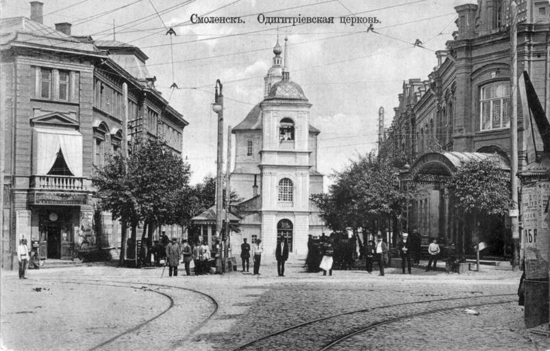 | Keywords: Odigitrievsky church in Smolensk 2.jpg en Odigitrievsky church in Smolensk located at the present in Lenin Street destroyed during the Soviet era ru Одигит иевская це ковь в Смоленске находилась на нынешней улице Ленина уничтожена п и советской власти О игинальная отк ытка е установлены before 1917 года PD-RusEmpire 20th-century postcards of Russia Postcards of Smolensk | ||||