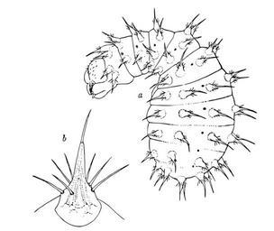 | Keywords: Odontomachus.haematodes.young.larva.-.wheeler.svg Odontomachus haematodes young larva a and its tubercle b Wheeler W M 1900 A study of some Texan Ponerinae Biological Bulletin 2 1-31 http //antbase org/ants/publications/10486/10486 pdf PDF 1900 W M Wheeler pd-old PD-old Drawings of animals by William Morton Wheeler Drawings of ants |