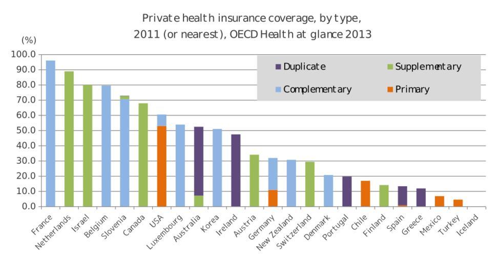 Keywords: Oecd-healthinsurance priv.svg ja Private Health Insunrance coverage by type 2011 OECD Health at a glance 2013 2014-10-27 13 21 20 own Yuasan other versions cc-zero Uploaded with UploadWizard Healthcare statistics