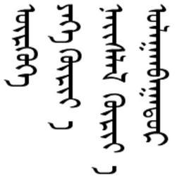 Keywords: Oerguge,ulaganbagatur.png en Mongolian capital Ulaanbaatar's historical names by Mongol script mn онгол улсын нийслэл Улаанбаата ын түүхэн нэ үүдийг онгол бичгээ бичив 2011-10-10 own MongolWiki cc-zero Uploaded with UploadWizard Texts in Mongolian script |