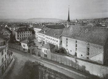 | Keywords: Oetenbach Strafanstalt 1900.jpg Strafanstalt Oetenbach in Zürich Ansicht von Südosten Foto 1900 Regine Abegg/Christine Barraud Wiener Kunstdenkmäler des Kanton Zürichs Neue Ausgabe Band II I Bern 2002 upload Mai 2008 unknown upload by Adrian Michael PD-old Prisons in Switzerland Historical photographs of Kloster Oetenbach |