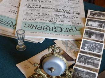 Keywords: office work desk magazine newspaper old styling photos