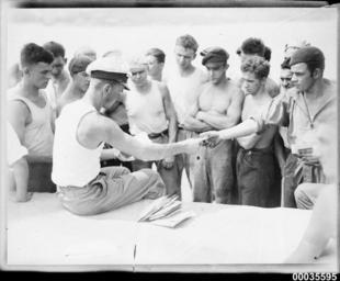 | Keywords: hood collection hoodcollection samuel j hood collection samueljhoodcollection merchant vessel merchantvessel foreign vessel foreignvessel maritime activity maritimeactivity barque sydney harbour sydneyharbour harbour scenes harbourscenes magdalene vinnen magdalenevinnen woolloomooloo ship's crew shipscrew sailors letters blackandwhite people monochrome photo border black and white This photograph probably depicts crew men of the four-masted steel barque MAGDALENE VINNEN receiving their personal mail. The vessel sailed into Sydney Harbour on 27 February 1933, under the command of Captain Lorenz Peters. The barque was loaded with almost 16,000 bales of wool, the fourth largest shipment to have left Sydney, before it sailed the record-breaking 82-day voyage for Falmouth, England. MAGDALENE VINNEN visited Australia again in 1935, with a cargo of wheat, lifted from Port Broughton in South Australia. This photo is part of the Australian National Maritime Museum’s Samuel J. Hood Studio collection. Sam Hood (1872-1953) was a Sydney photographer with a passion for ships. His 60-year career spanned the romantic age of sail and two world wars. The photos in the collection were taken mainly in Sydney and Newcastle during the first half of the 20th century. The ANMM undertakes research and accepts public comments that enhance the information we hold about images in our collection. This record has been updated accordingly. Photographer: Samuel J. Hood Studio Collection Object no. 00035595 This photograph probably depicts crew men of the four-masted steel barque MAGDALENE VINNEN receiving their personal mail. The vessel sailed into Sydney Harbour on 27 February 1933, under the command of Captain Lorenz Peters. The barque was loaded with almost 16,000 bales of wool, the fourth largest shipment to have left Sydney, before it sailed the record-breaking 82-day voyage for Falmouth, England. MAGDALENE VINNEN visited Australia again in 1935, with a cargo of wheat, lifted from Port Broughton in South Australia. This photo is part of the Australian National Maritime Museum’s Samuel J. Hood Studio collection. Sam Hood (1872-1953) was a Sydney photographer with a passion for ships. His 60-year career spanned the romantic age of sail and two world wars. The photos in the collection were taken mainly in Sydney and Newcastle during the first half of the 20th century. The ANMM undertakes research and accepts public comments that enhance the information we hold about images in our collection. This record has been updated accordingly. Photographer: Samuel J. Hood Studio Collection Object no. 00035595 |